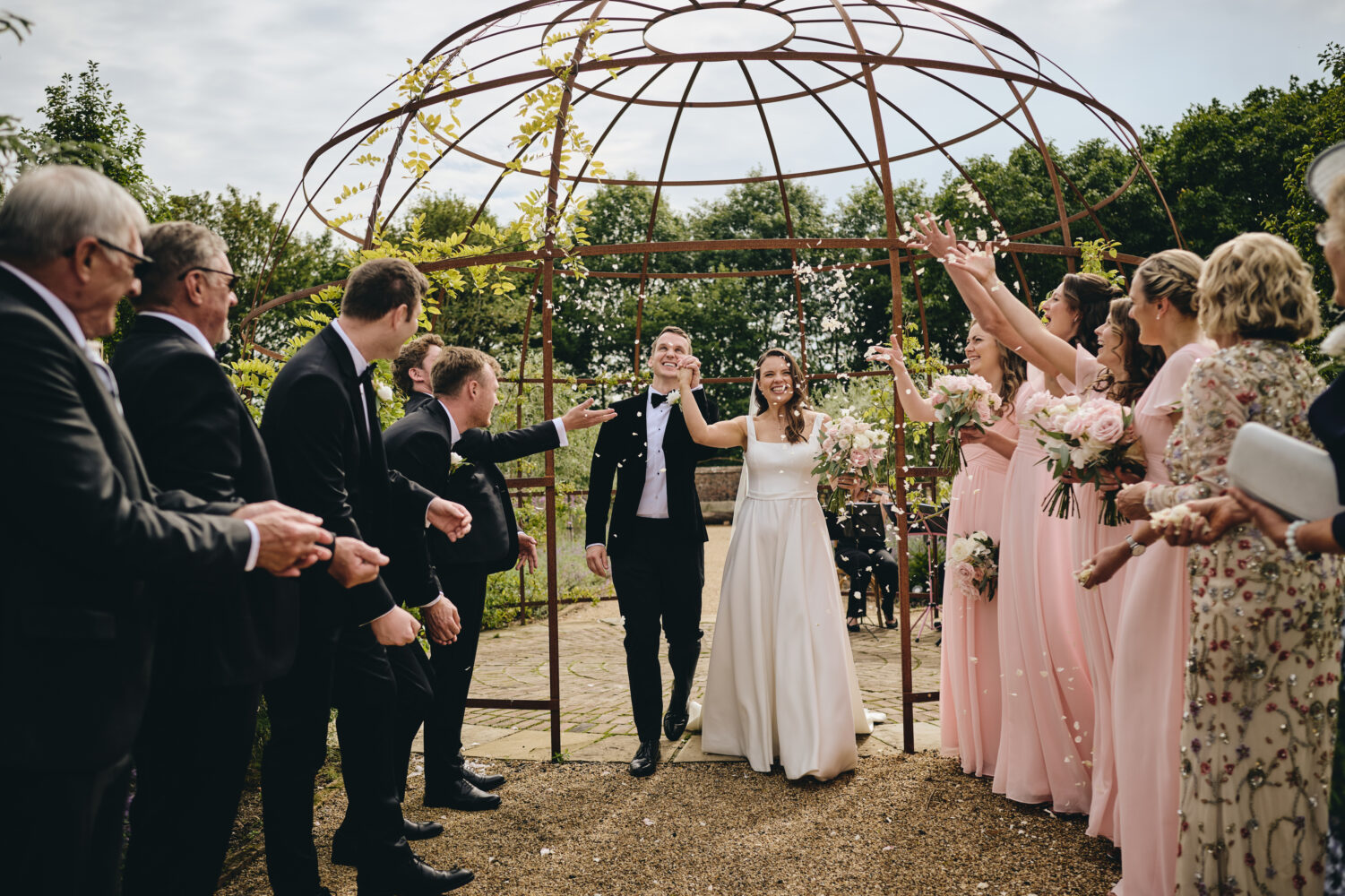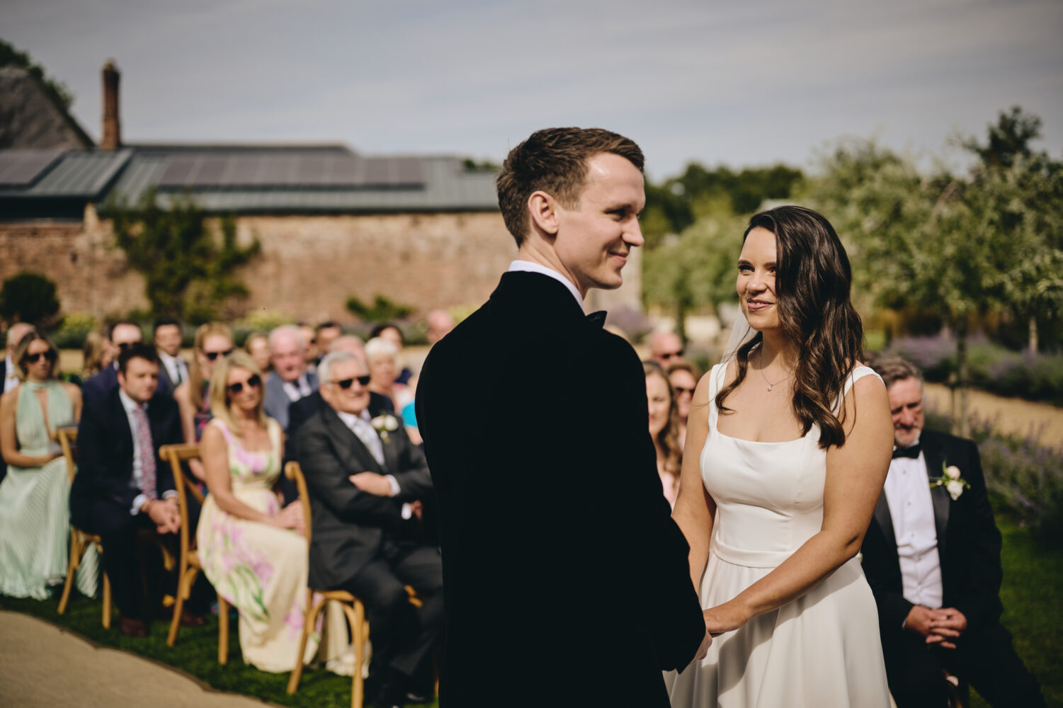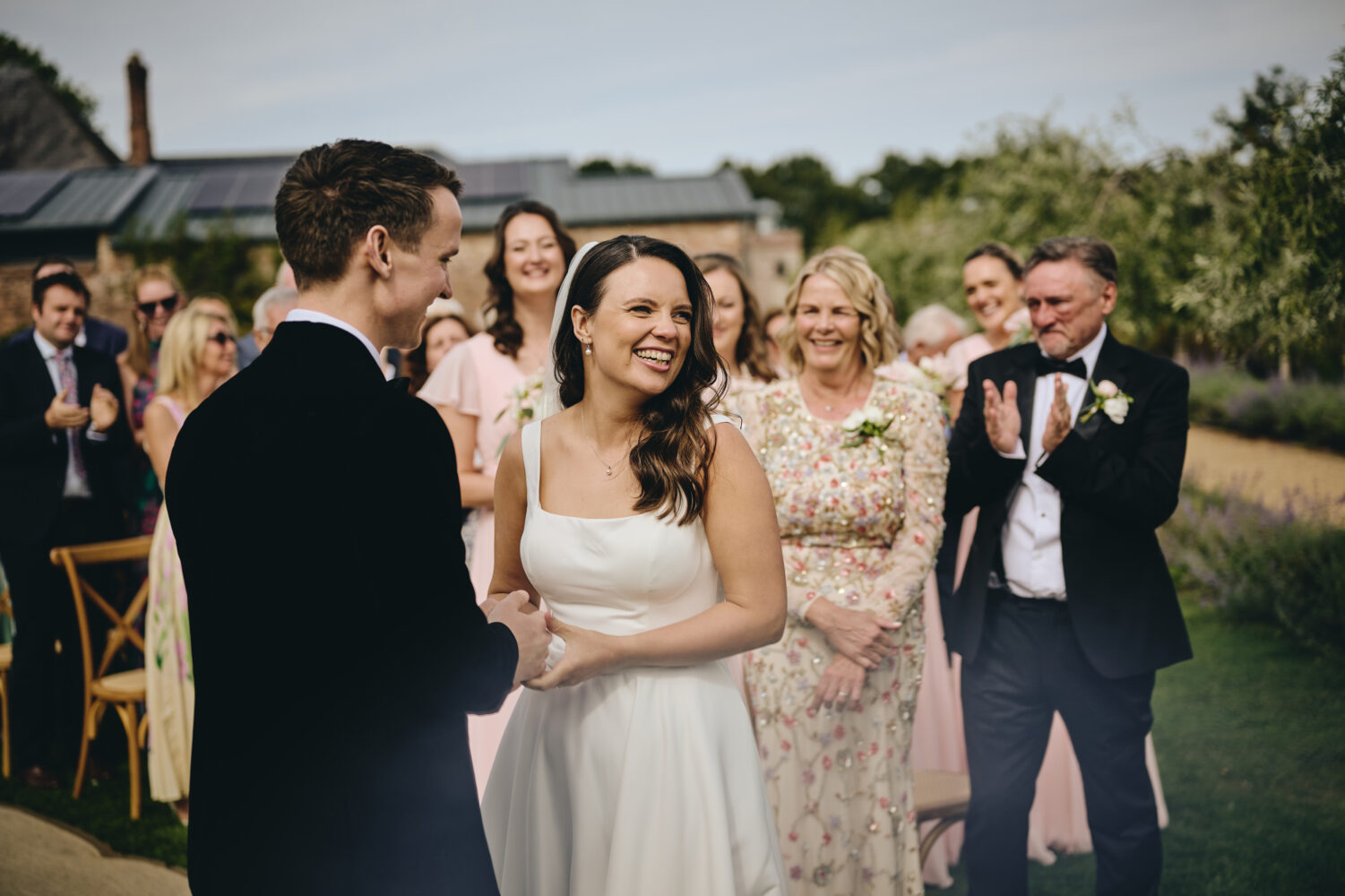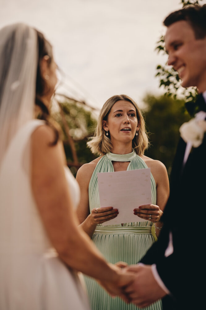 Choosing a garden ceremony allowed Maisie & Lewis to create a wedding that felt personal and informal while still incredibly romantic. Surrounded by family and friends, they exchanged vows beneath open skies with the soft sounds of nature in the background.