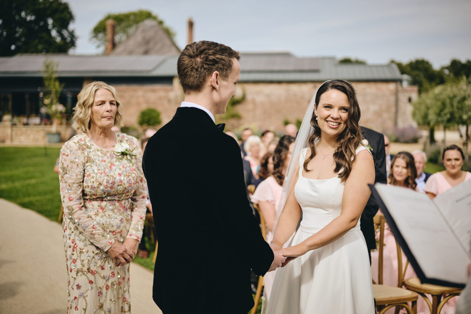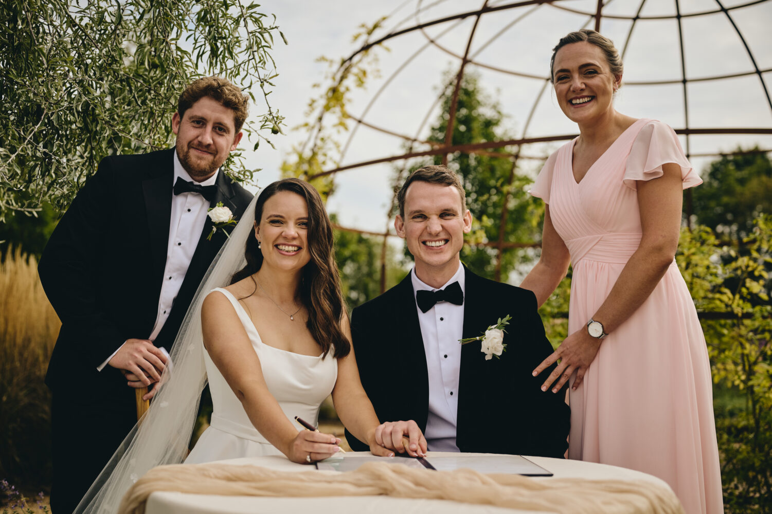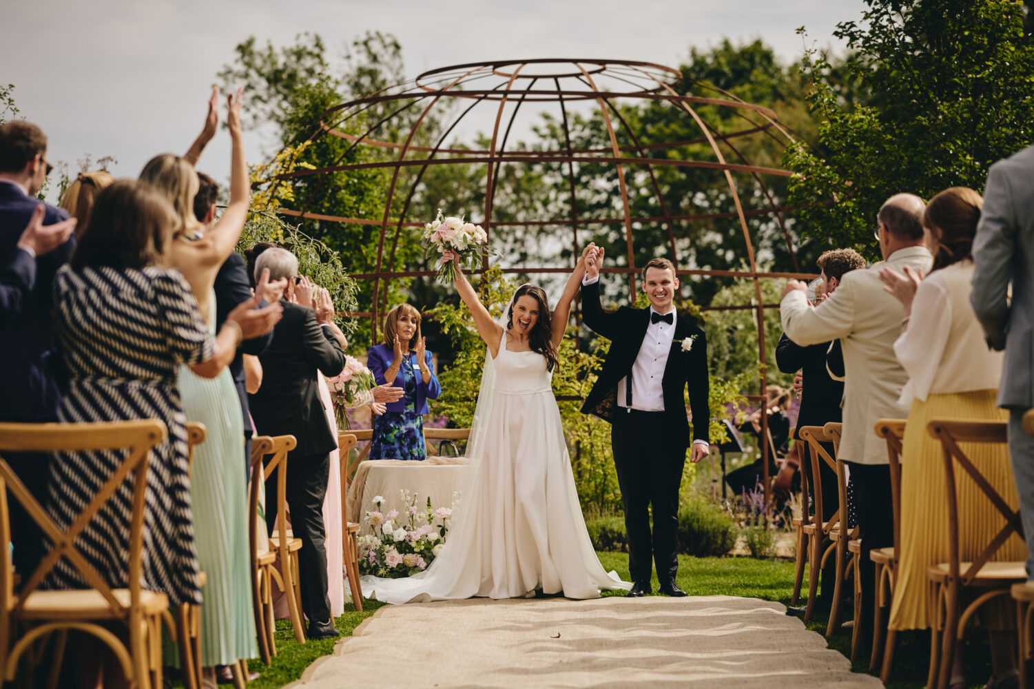 Choosing a garden ceremony allowed Maisie & Lewis to create a wedding that felt personal and informal while still incredibly romantic. Surrounded by family and friends, they exchanged vows beneath open skies with the soft sounds of nature in the background.