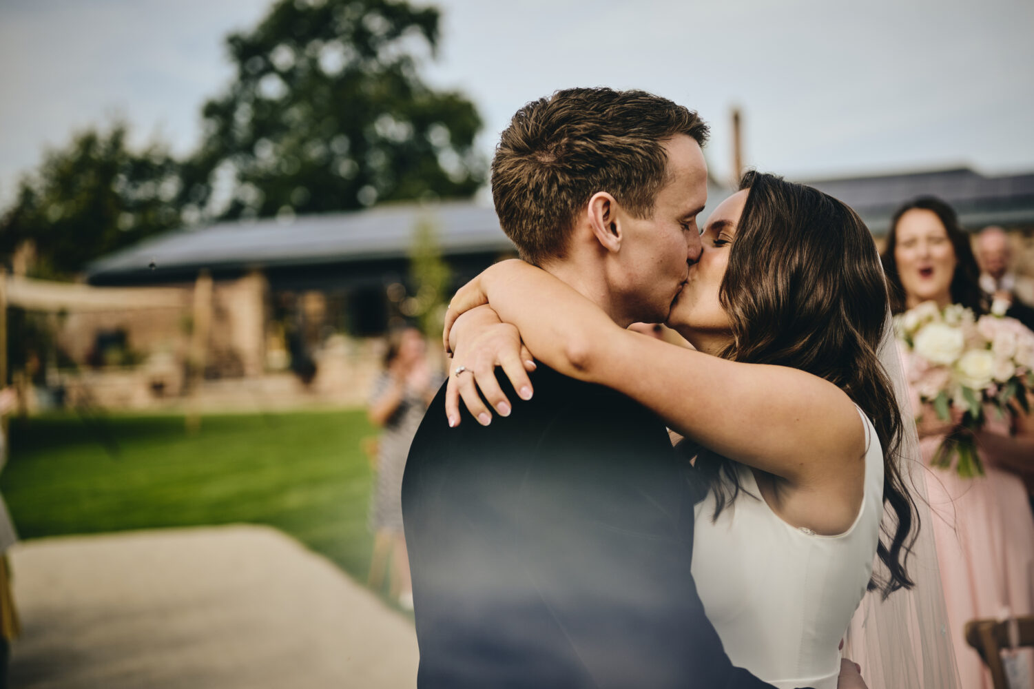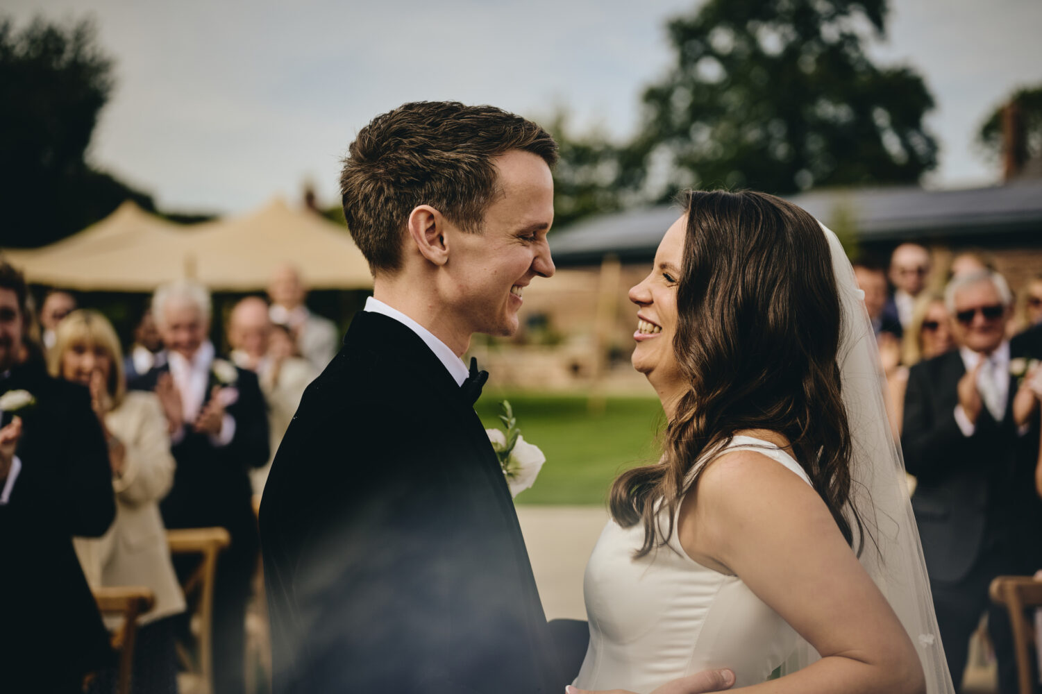 As evening approached, the soft golden light transformed the grounds around Hutton Wandesley Stables. Summer weddings offer some of the most beautiful portrait opportunities, and Maisie & Lewis fully embraced this peaceful part of the day.